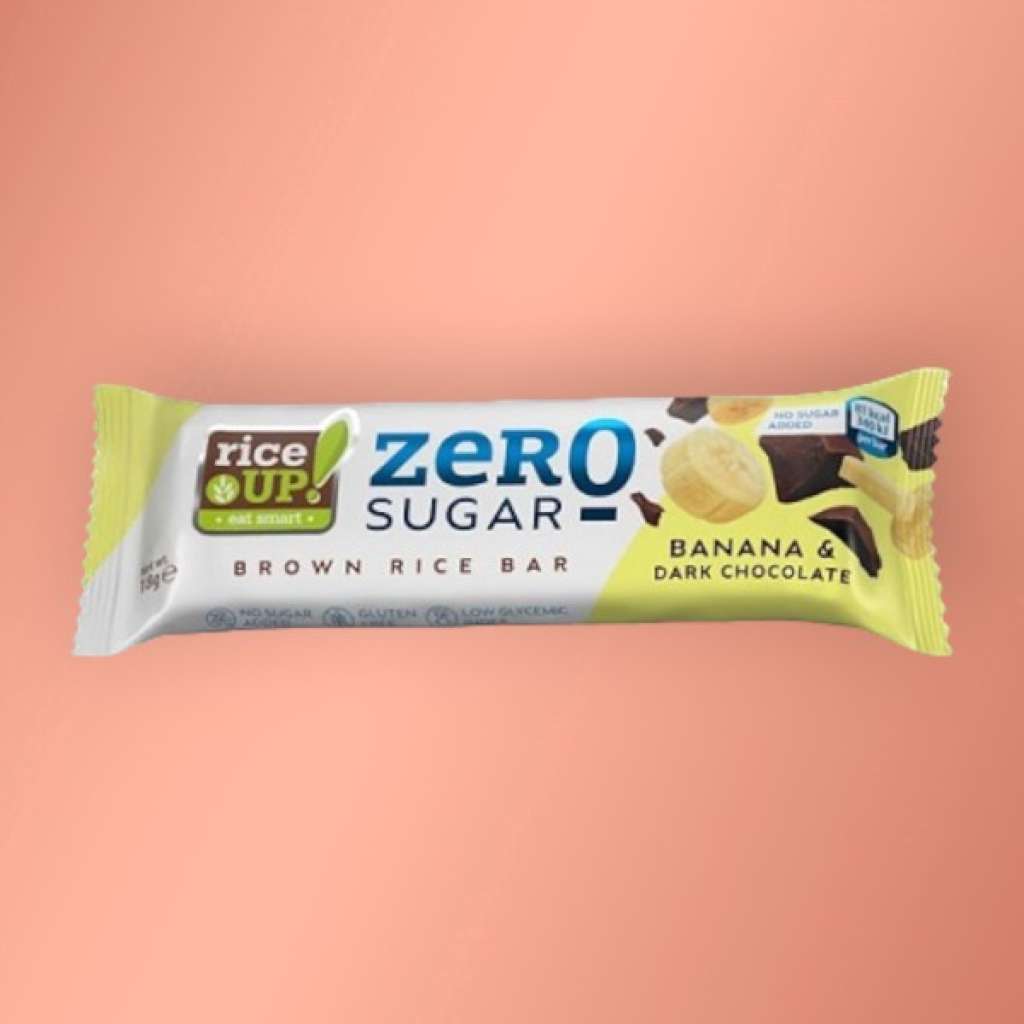 Gluténmentes Rice up Puffasztott teljes kiőrlésű barna rizsszelet banános ízű étcsokoládéval hozzáadott cukor nélkül.