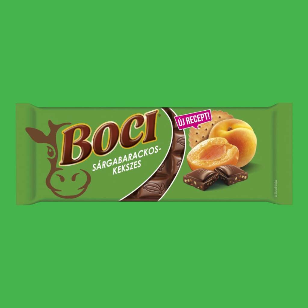 Összetevők: Cukor, Kakaóvaj, Kakaómassza, Zsíros tejpor, Kekszdarabkák 10% (búzaliszt, cukor, pálmazsír, glükózszirup, aromák, térfogatnövelő szerek: ammónium- és nátrium-karbonátok; emulgeálószer: szójalecitin; antioxidáns: kálium-metabiszulfit), Sárgabarck aszalvány 3,5% (tartósítószer: kén-dioxid), Tejsavópor, Tejzsír, Mogyorópaszta, Emulgeálószer (napraforgólecitin), Aromák, Kakaó szárazanyag a tejcsokoládéban legalább 35%.