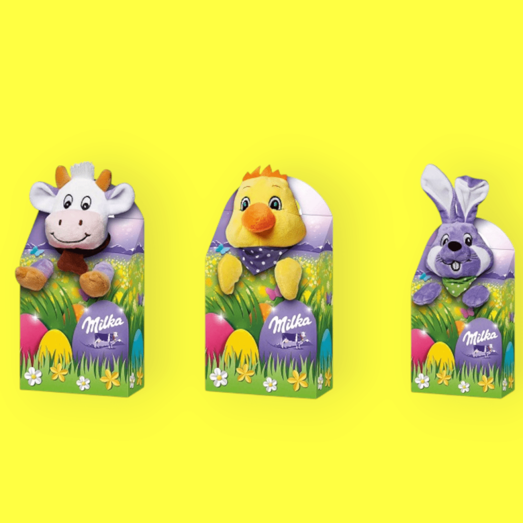 Húsvéti Plüss Csomag Milka 96 g. Vegyes plüssel.